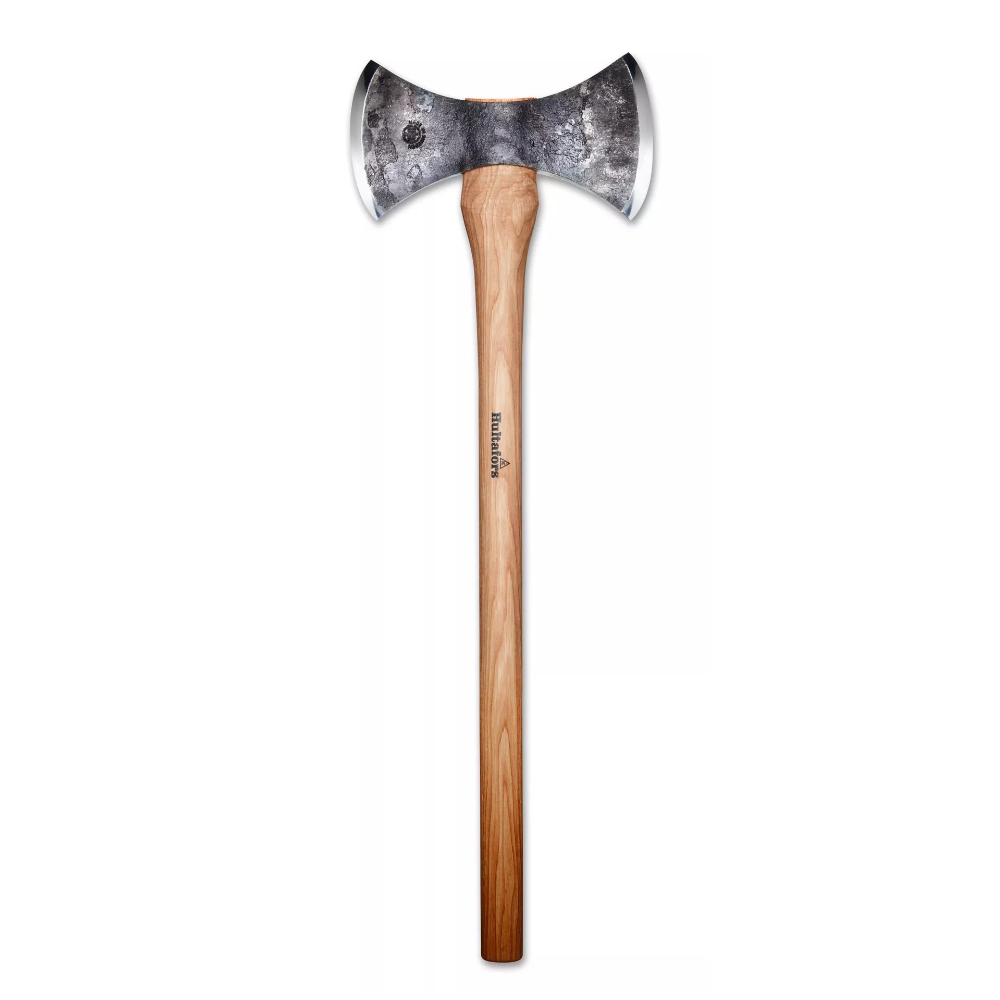 En karakteristisk økse med dobbeltæg, brugt af skovhuggere for at sikre, at de altid havde en skarp økse med sig ude i skoven.