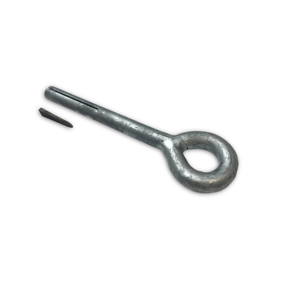 Klippeøje med kile, fremstillet af varmgalvaniseret stål, beregnet til fastgørelse i klippe og på klipper.