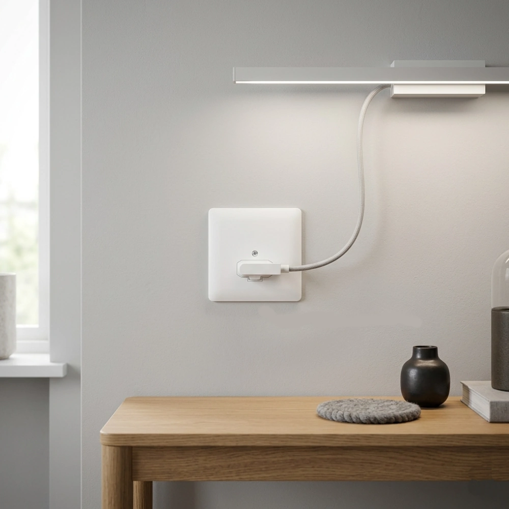 Opgrader din boligbelysning med dette moderne og sikre DCL-udtag (Devices for Connection of Luminaires), et jordet 1-vejs udtag i høj kvalitet designet til en diskret og professionel installation af loft- og vægarmaturer ved både nybyggeri og renovering. Dette udtag er konstrueret til fleksibel og nem installation i henhold til DCL-standarden (EN 61995-1) og tilbyder maksimal alsidighed, da det passer perfekt i de fleste standardiserede indbygningsdåser, samledåser og lampedåser. Det smarte design muliggør en stilren planforsænket montering, der falder naturligt ind i væggen; hvis en indbygningsdåse mangler, kan enheden nemt suppleres med en underlagskappe for en flot og professionel udvendig montering. Som den moderne europæiske standard for belysningstilslutninger øger dette 6A 250V DCL-udtag elsikkerheden i hjemmet betydeligt, hvilket gør, at du trygt kan udskifte eller flytte lamper uden risiko for kontakt med strømførende dele. Ved at kombinere en holdbar hvid finish med robuste tekniske komponenter er dette planforsænkede DCL-udtag det perfekte valg til elinstallationer, der sikrer, at dit hjem forbliver sikkert, funktionelt og fremtidssikret.