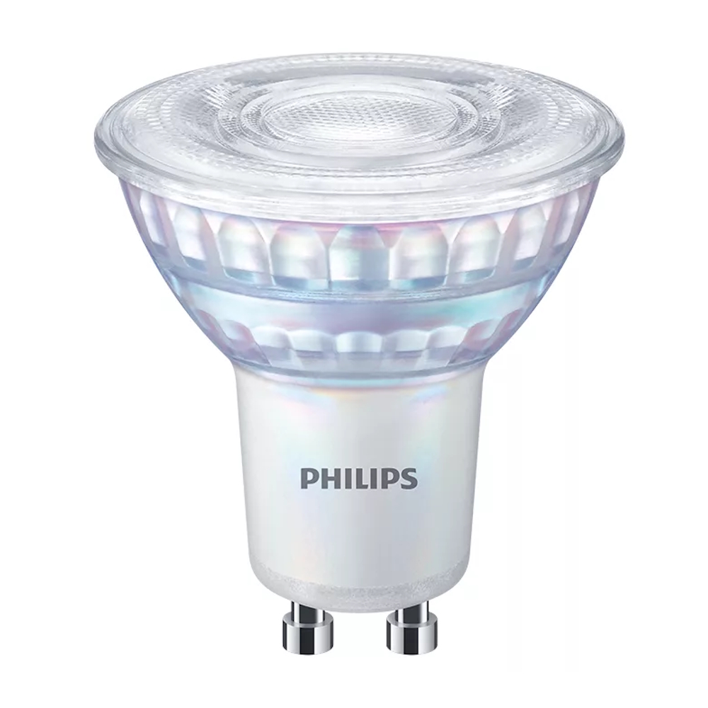 Philips CorePro LED spot GU10 4-50W i 2700K varm hvid er dæmpbar. Med et klassisk, traditionsrigt design leverer Corepro LED et varmt halogenlignende lys, samtidig med at det sparer omkring 90% på energiomkostningerne og er kompatibel med de fleste eksisterende GU10-armaturer. Den er designet som en eftermonteret erstatning for 50W halogen- eller glødepærer. CorePro LED-lamper giver enorme energibesparelser og minimerer vedligeholdelsesomkostninger.
