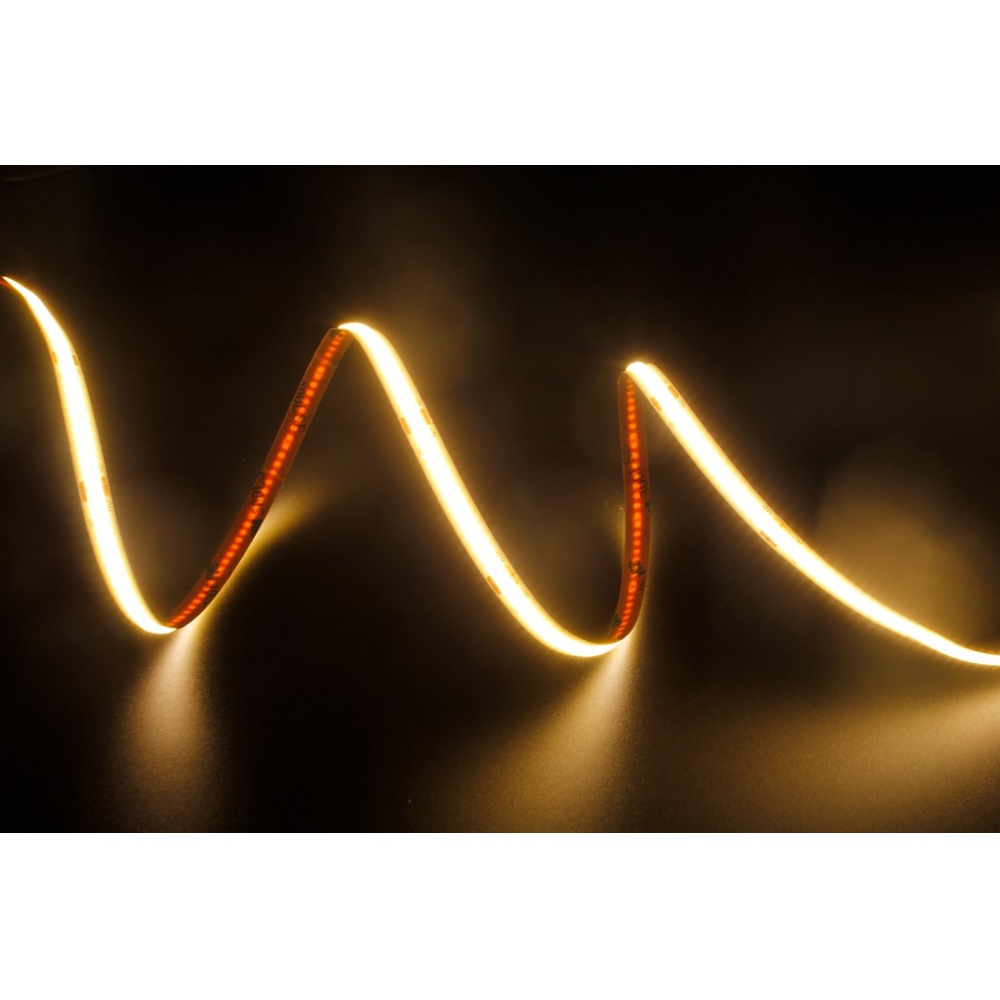 Dæmpbar LED-stribe til forskellige typer indendørs formål. COB-teknologi bidrager til et mere jævnt lys uden synlige punkter. [Energiklass F]