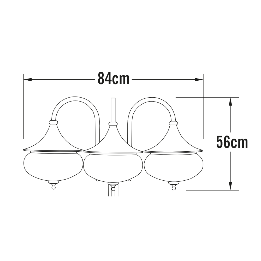 Elegant udendørslampe har et romantisk, traditionelt design med tre lyskilder, der giver en jævn og dekorativ lysspredning.