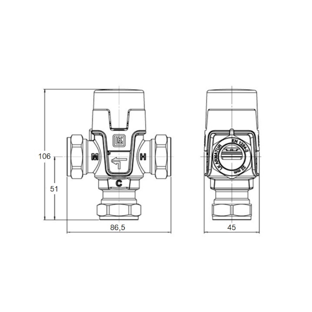 LK 551 HydroMix Blandeventil 15mm Klemmetilslutning