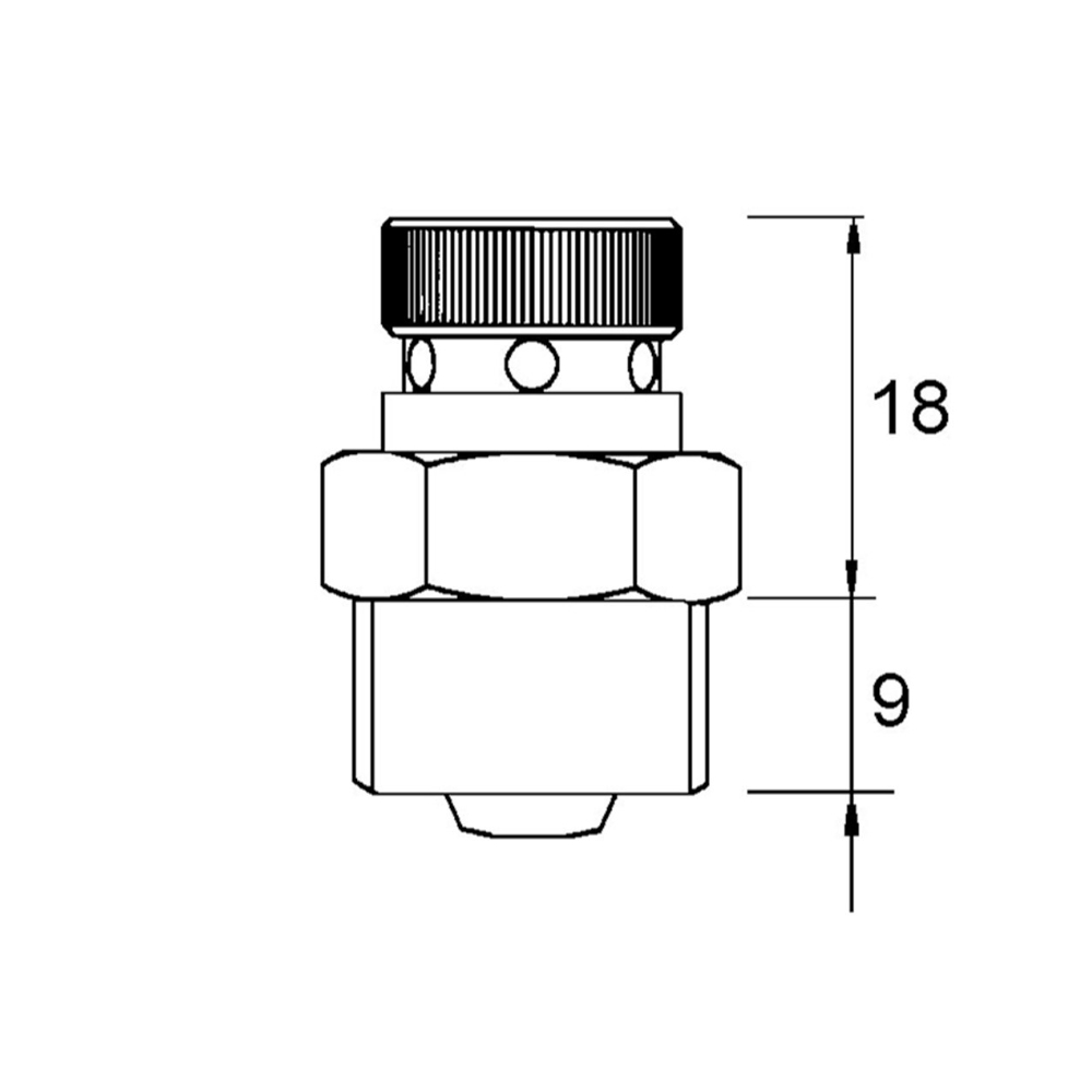 Udluftningsventil til varmesystemer. Udluftningsventiler monteres i systemets høje punkter. Monteres på fordelerrør, radiatorer osv. Gevindet er tætnet på normal vis. BEMÆRK! For at undgå risiko for lækage - sørg for at den kærvformede skrue er strammet, så den hviler mod ekspansionspladerne. Ved idriftsættelse er det normalt, at udluftningsventilen lækker et par dråber vand.
