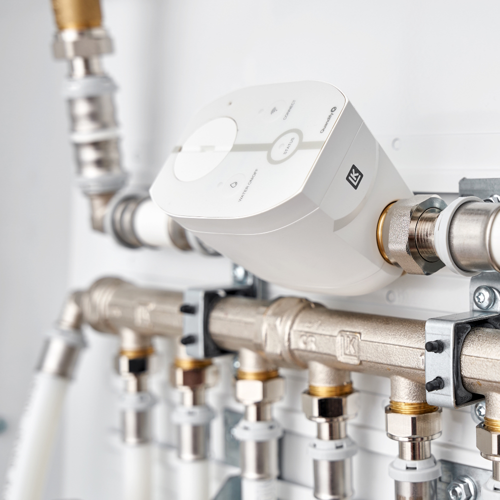 LK CubicSecure måler vandgennemstrømning og registrerer vandlækager med det samme, den fungerer også helt selvstændigt uden internetforbindelse.