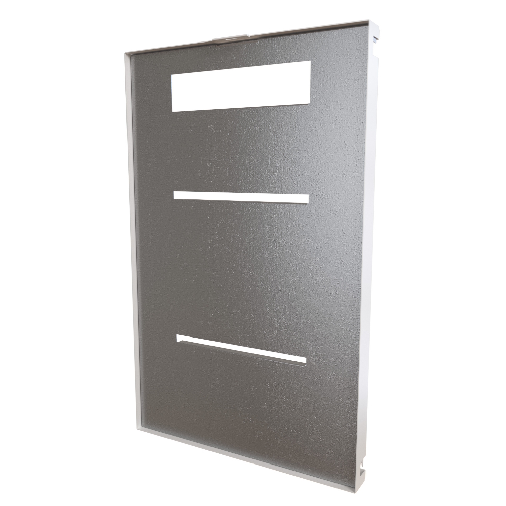 Dør beregnet til LK Vådzone Dør Forsegl. For at få et stilfuldt design er det muligt at lime fliser på døren. Den indvendige fliseramme kan justeres mellem 6-13mm, så overfladen på den færdige flisebelagte dør flugter med væggen. Døren lukkes med en magnet mod den tætte dør og har et diskret håndtag på overkanten til åbning. Døren er ikke beregnet til daglig vanding. Fremstillet af pulverlakeret galvaniseret stålplade, hvid farve RAL9016.