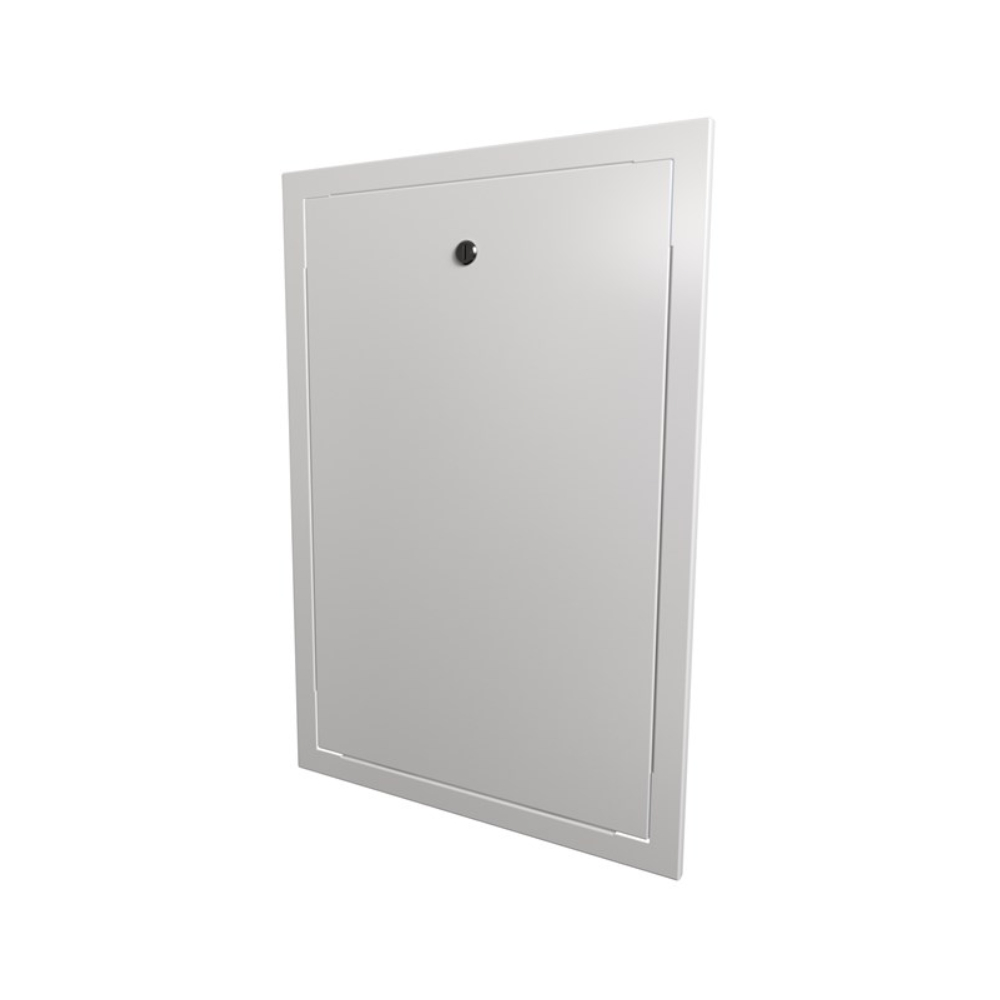 Karme med dør beregnet til LK Vådzone Dør Forsegl. Døren er ikke beregnet til daglig vandsprøjtning. Fremstillet af pulverlakeret galvaniseret stålplade, hvid farve RAL9016. Som standard er døren udstyret med en skruetrækkerlås, og som tilbehør er der en nøglelås.