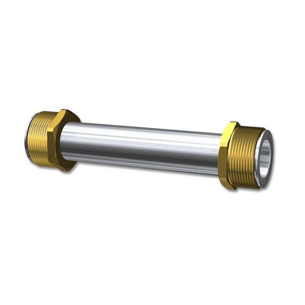 LK Fitting bruges som afstandsstykke til senere tilslutning af vandmålere eller varmemålere i LK Fordelerskab UNI. Leveres med 2 fiberpakninger. Røret er lavet af rustfrit stål. Niplerne er lavet af afzinkningsbestandig messing.