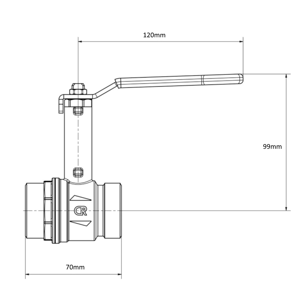 Kugleventil i afzinkningsbestandig messing med høj hals, egnet til spindler med isolering, tilsluttes med metallisk pakning og udvendigt M-gevind.