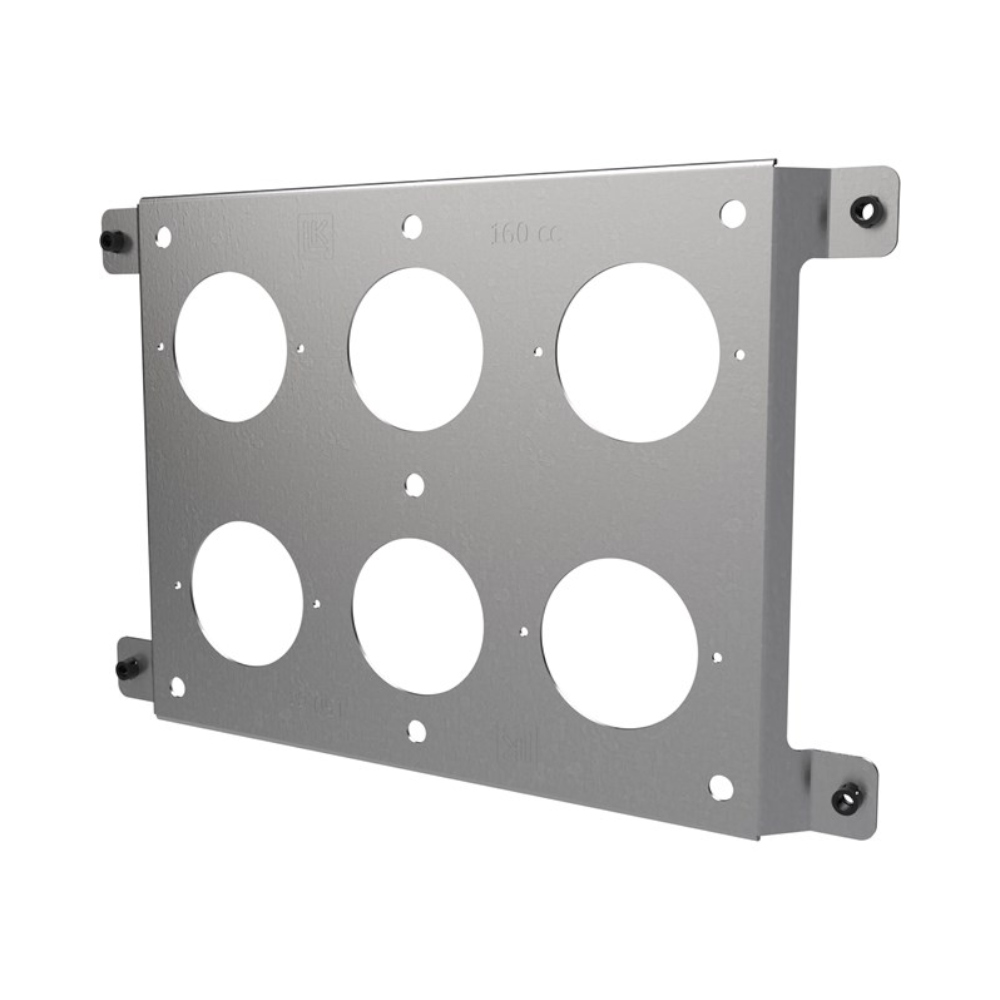 LK Monteringsbeslag Beton letter rørudgang fra støbte betonvægge. Monteringsbeslaget kan fastgøres til den forreste eller bageste form. Har huller til at kunne montere to plader med en afstandsholder ved hjælp af en gevindstang og flangemøtrik. Beslaget er beregnet til brug sammen med LK Enkeltstøbningsboks. Med LK Enkeltstøbningsboks er følgende monteringsmuligheder tilgængelige c/c 150 og 160 mm, pladen er vendbar og tydeligt markeret. Beslaget giver også mulighed for at fastgøre eventuelle afløbsrør dy 50 mm fra f.eks. håndvaske. Fremstillet af 1,25 mm overfladebehandlet stålplade.