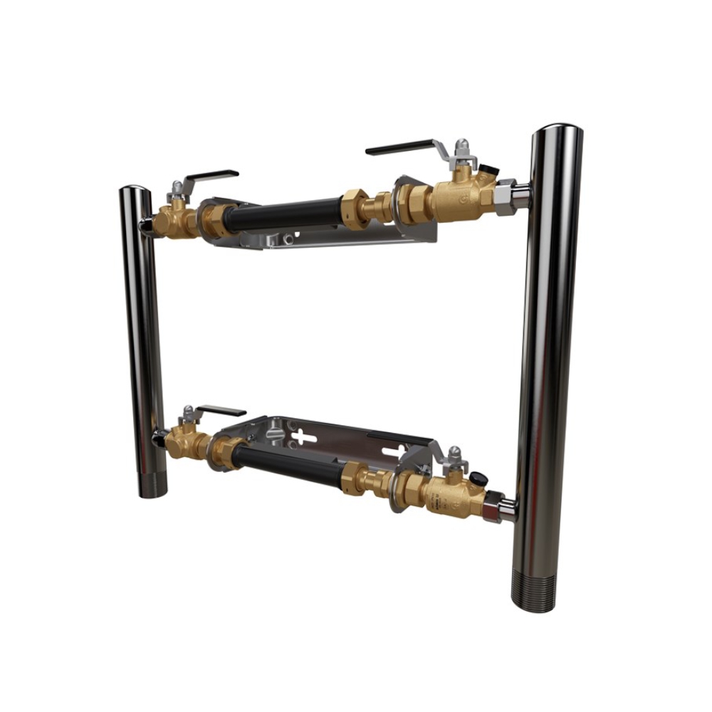 LK Parallel Vandmålerkonsol (LK PVK) til vandmålere Q3 4 med indbygningslængde 190-220 mm tilslutning G25. LK PVK fås i mange forskellige modeller med varianter til kun 190 mm målere og 190-200 mm målere. Ved at lukke ventilen før og efter en vandmåler kan den afmonteres, mens vandstrømmen fortsætter gennem de andre målere. LK PVK leveres altid med en indbygget kontraventil i ventilen efter måleren. Denne kontraventil er også styrbar og kan også udskiftes, hvis den går i stykker. På LK PVK kan du også vælge, om du ønsker indgående vand ovenfra eller nedefra, det samme gælder efter målerne. LK Passbit 190mm, som leveres med alle LK PVK-modeller, er beregnet til permanent installation på koldt vand, men kun midlertidigt på varmt vand. Manifolderne og beslagene til vandmålerne er lavet af rustfrit stål.