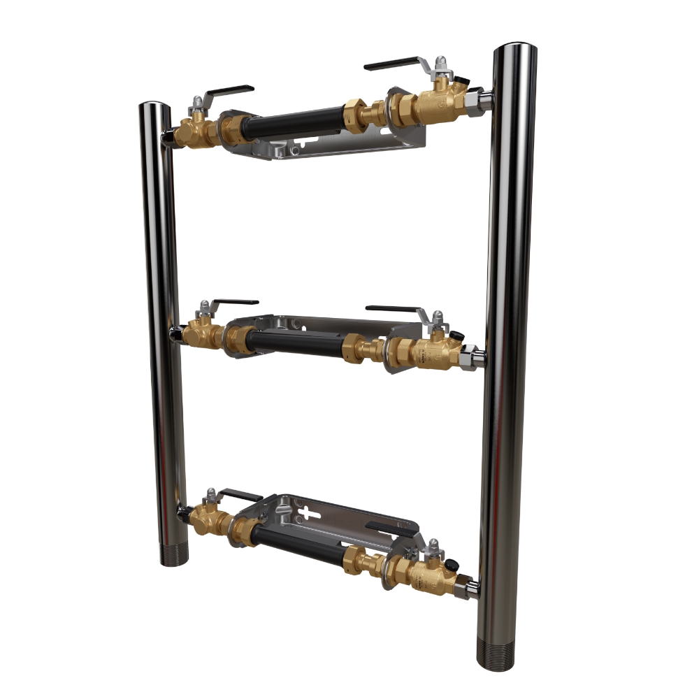 LK Parallel Vandmålerkonsol (LK PVK) til vandmålere Q3 4 med indbygningslængde 190-220 mm tilslutning G25. LK PVK fås i mange forskellige modeller med varianter til kun 190 mm målere og 190-200 mm målere. Ved at lukke ventilen før og efter en vandmåler kan den afmonteres, mens vandstrømmen løber gennem de andre målere. LK PVK leveres altid med en indbygget kontraventil i ventilen efter måleren. Denne kontraventil er også styrbar og kan også udskiftes, hvis den går i stykker. På LK PVK kan du også vælge, om du ønsker indgående vand ovenfra eller nedefra, det samme gælder efter målerne. LK Passbit 190mm, som leveres med alle LK PVK-modeller, er beregnet til permanent installation på koldt vand, men kun midlertidigt på varmt vand. Manifolderne og beslagene til vandmålerne er lavet af rustfrit stål.