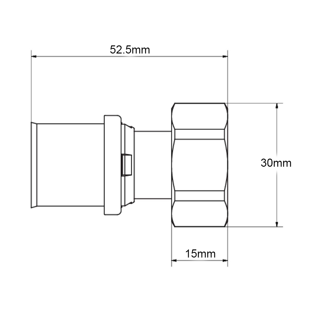 Presskoppling för sammanfogning av LK PAL samt LK PE-X Universalrör. Kopplingen har metallisk tätning mot LK Kulventil hög hals, M-Gänga som finns i motsvarande dimension M26 - M70. Alla dimensioner har gult kopplingshus.