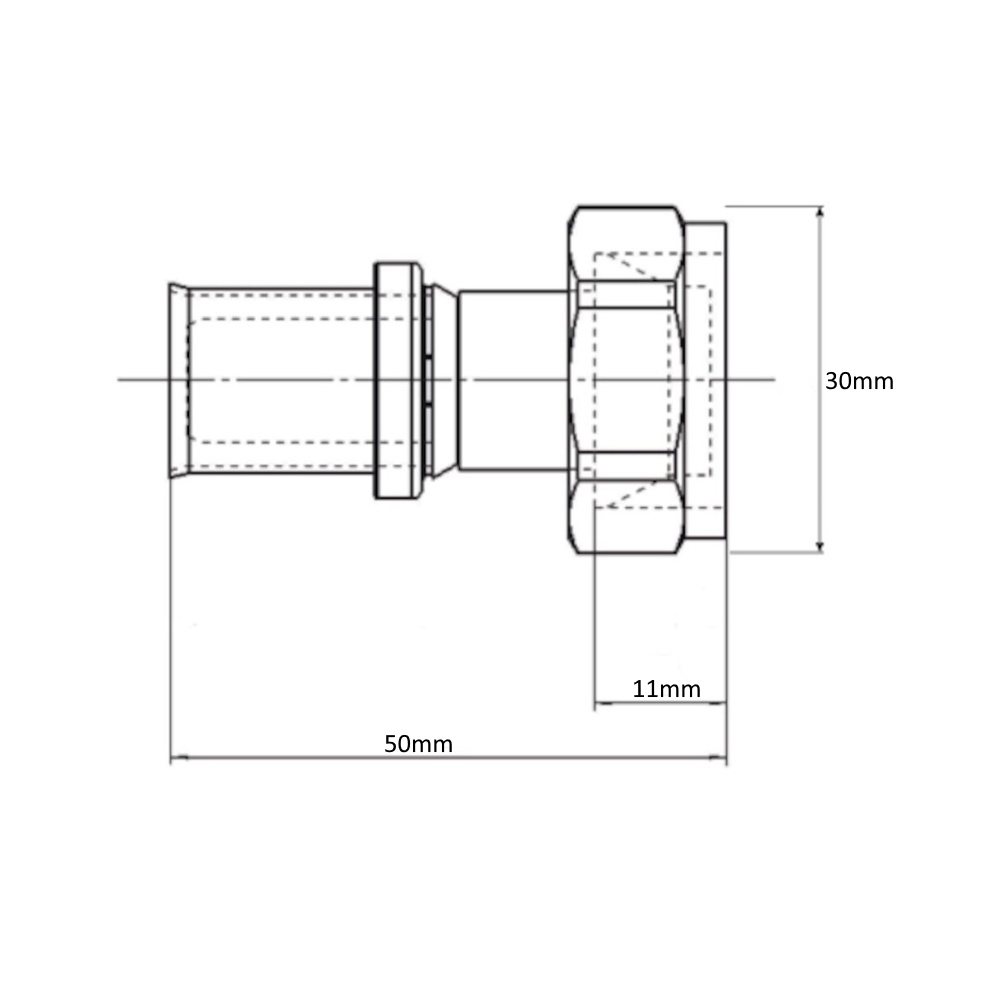 PressPex-kobling med spilmøtrik til tilslutning af LK PE-X og LK PAL Universalrør til udvendig EuroCone på f.eks. LK Manifold UNI. Dele af dette sortiment i dimensionerne AX16 16x2,0 mm og A32 32x3,0 mm kan også bruges til PEM-rør.