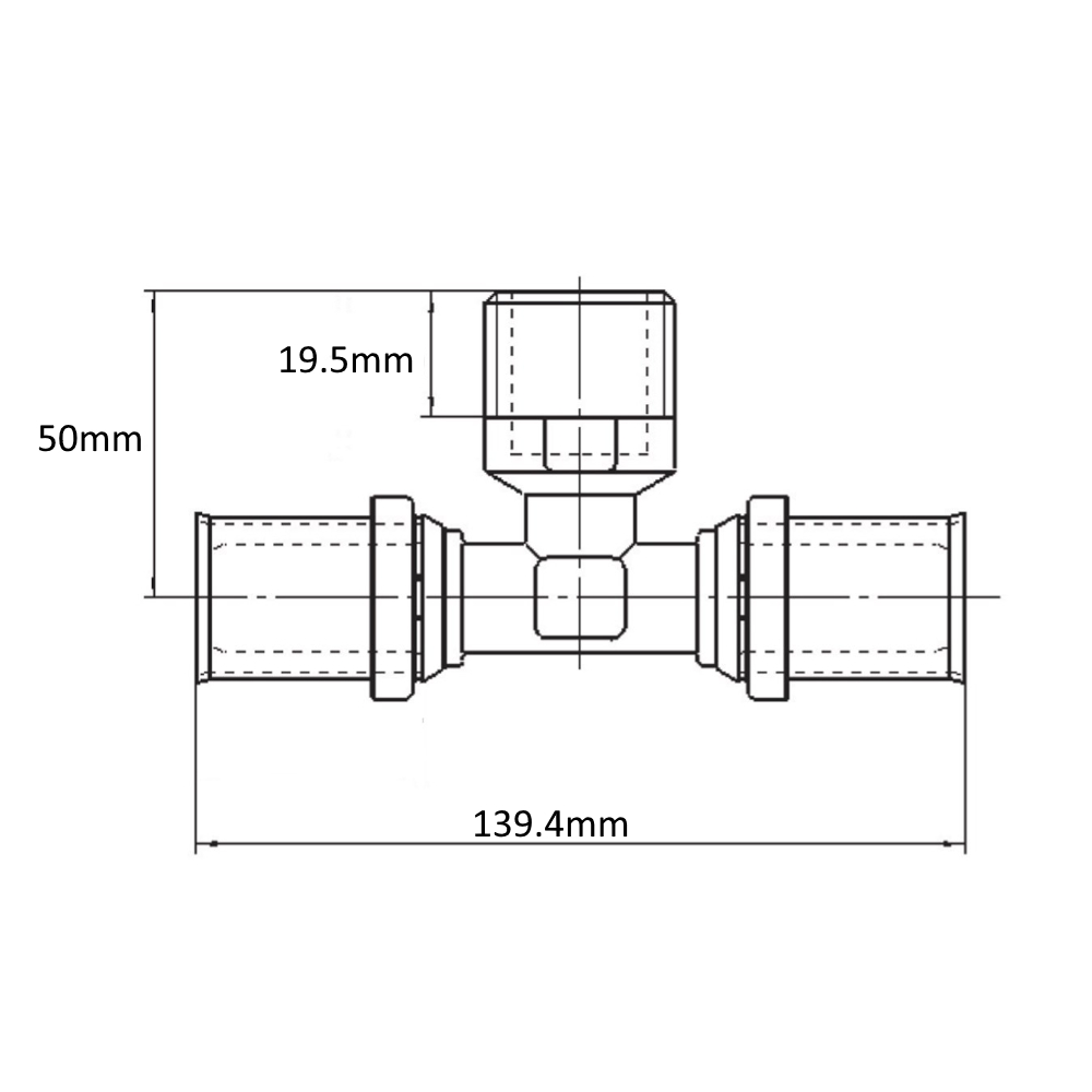 LK PressPex T-kobling Udvendig Gevind Med Afgrening A50xR32