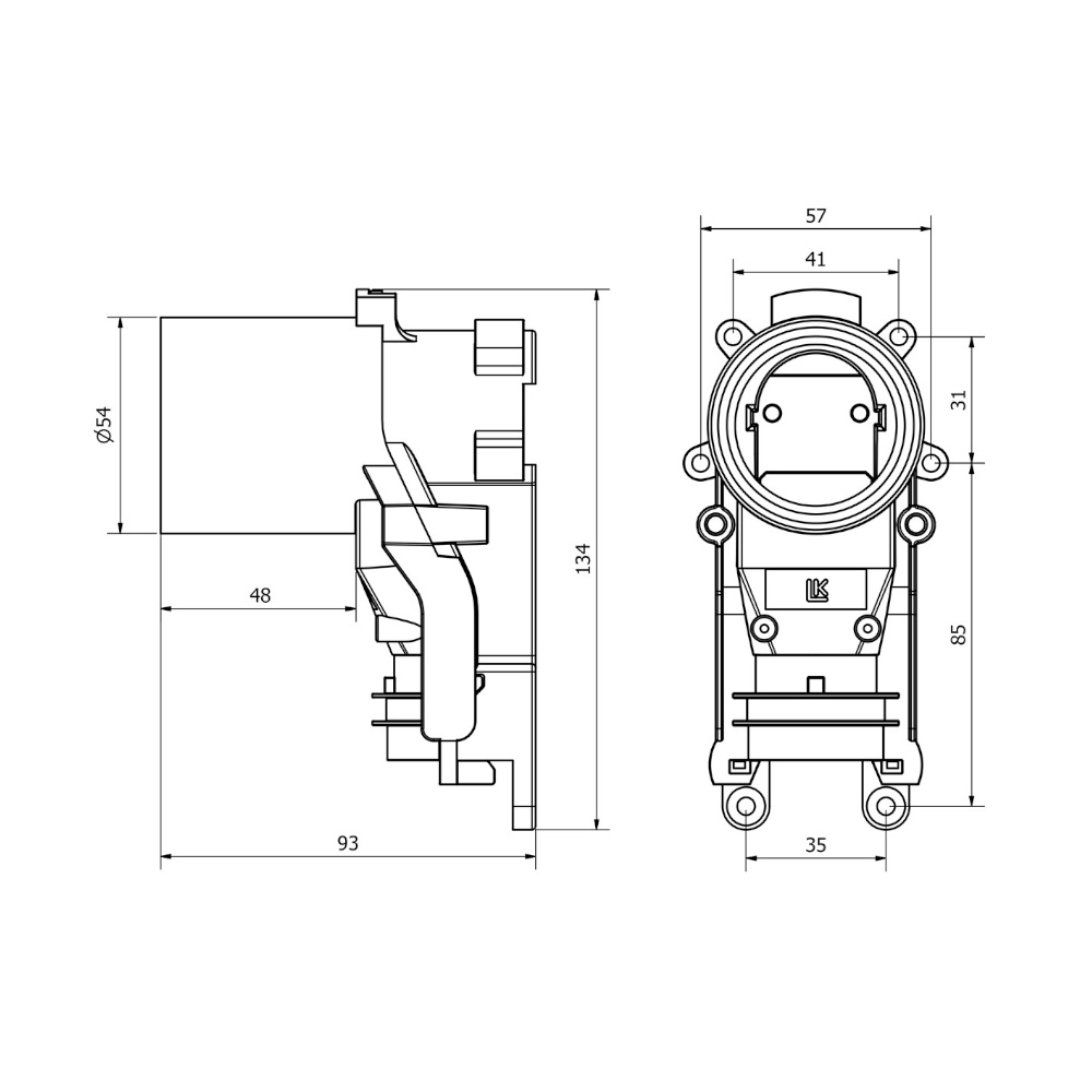 Til rørudløb fra væg med min. 45 mm afstand i væg, har vægdåsens hals en diameter på 54 mm, minimum c/c afstand mellem rørudløb er 80 mm.