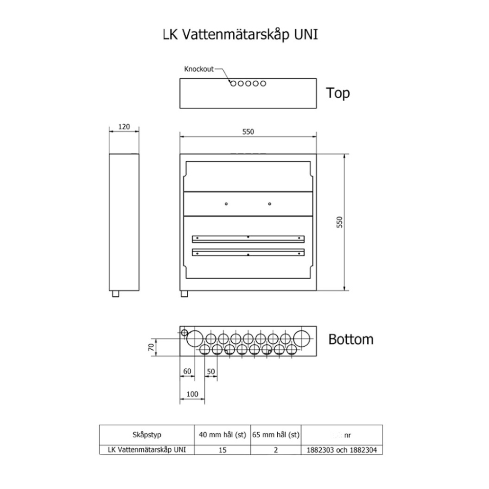 BEMÆRK! LK ramme med dør bestilles separat, 1881305 passer til LK vandmålerskab UNI.