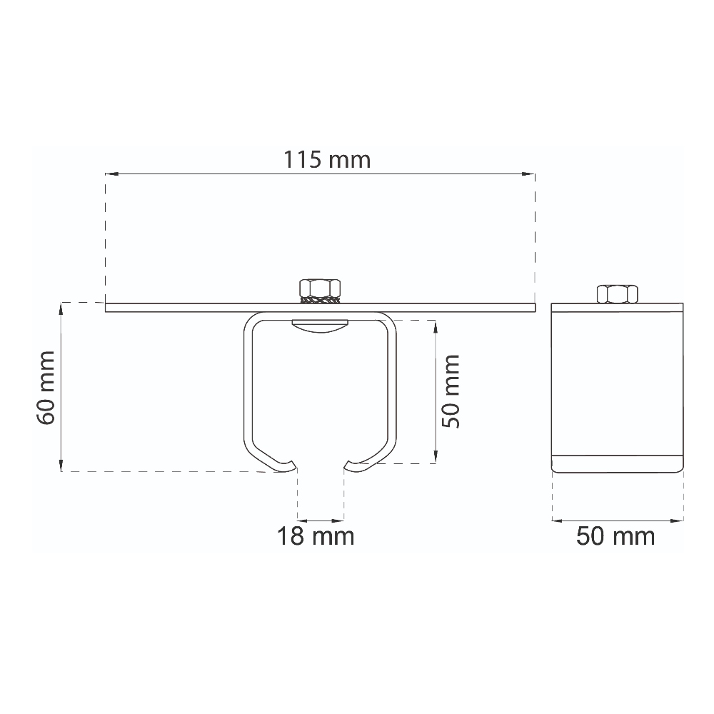 Loftbeslag i stål til enkelt skinne, beregnet til loftmontering af skinner til SF-150 og SF-300.