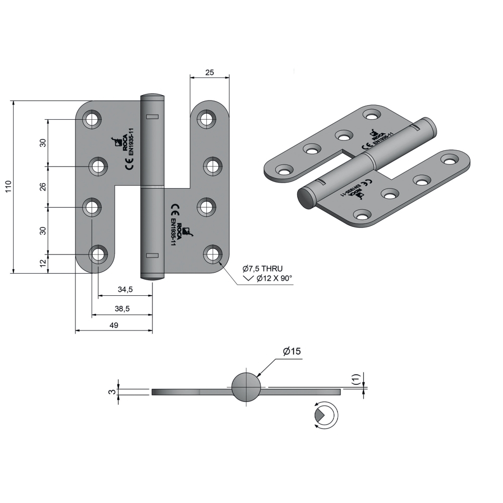 Løftehængsel 3228 rustfrit stål A4, skruer medfølger.