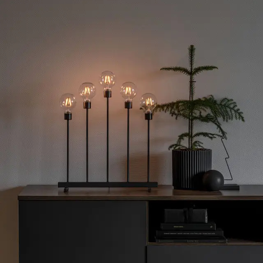 Lysestage 5 Amber Lys LED IP20 Metal Sort Konstsmide