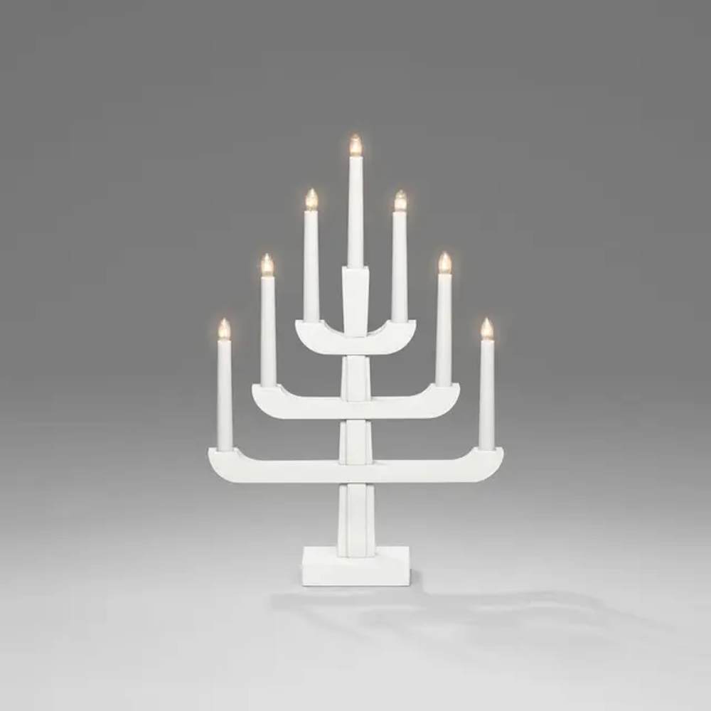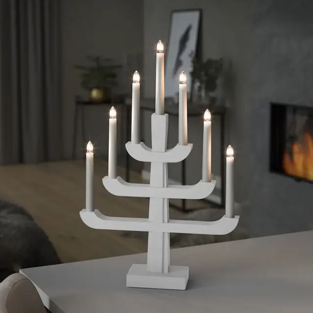 Lysestage 7 Lys E10 230V IP20 Træ Hvid Konstsmide