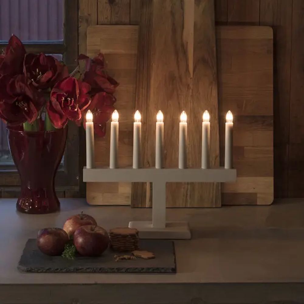 Lysestage 7 Varmhvide Stearinlys E10 IP20 Træ Hvid Konstsmide