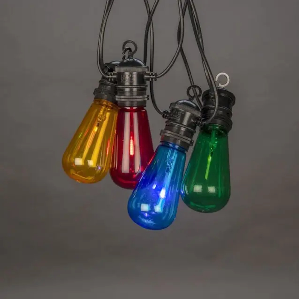Lyskæde 10 Flerfarvede LED Udskiftelige E27 IP44 Sort/Multifarvet Konstsmide