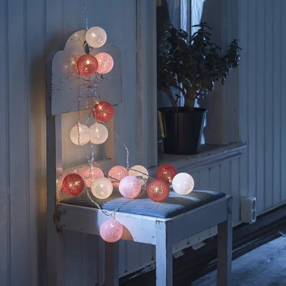 Lyskæde Med 16 Garnnøgler Varm Hvid LED IP20 Hvid/Rød/Lyserød Konstsmide