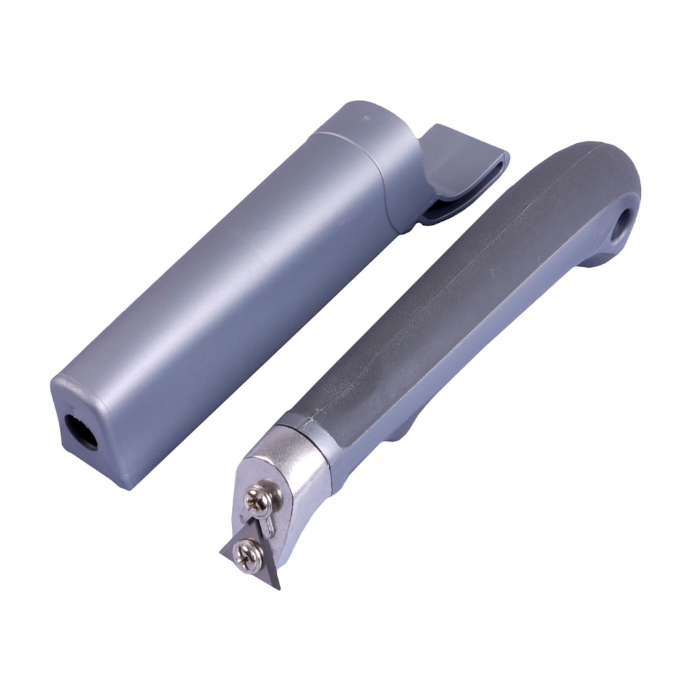 En effektiv malingskraber med hylster, perfekt til at skrabe vinduer, døre og lister. Hårdmetalklinge.