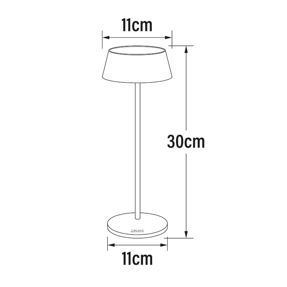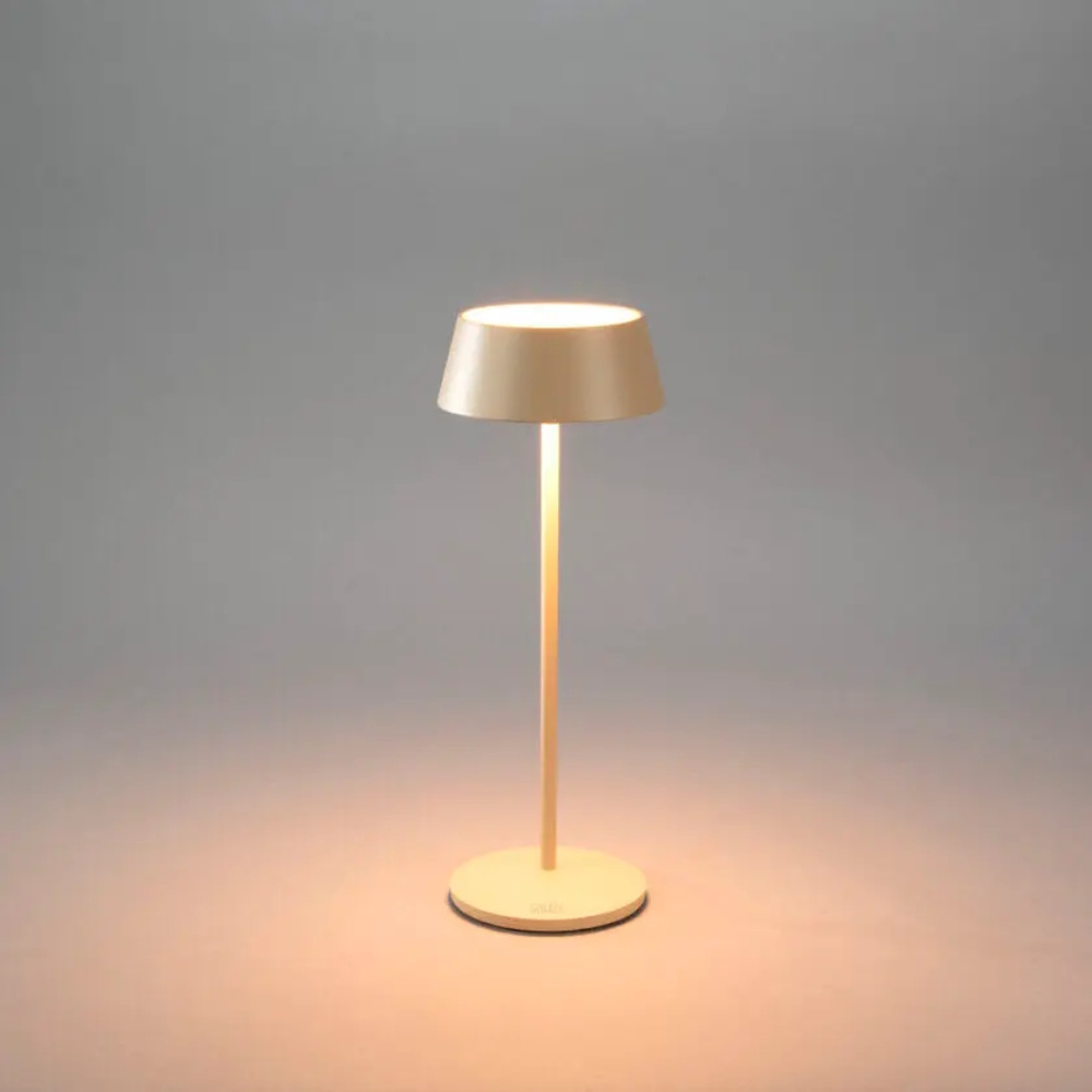 En moderne, genopladelig loungelampe med en batterilevetid på mindst 9 timer ved fuld lysstyrke. Lyser både opad og nedad.