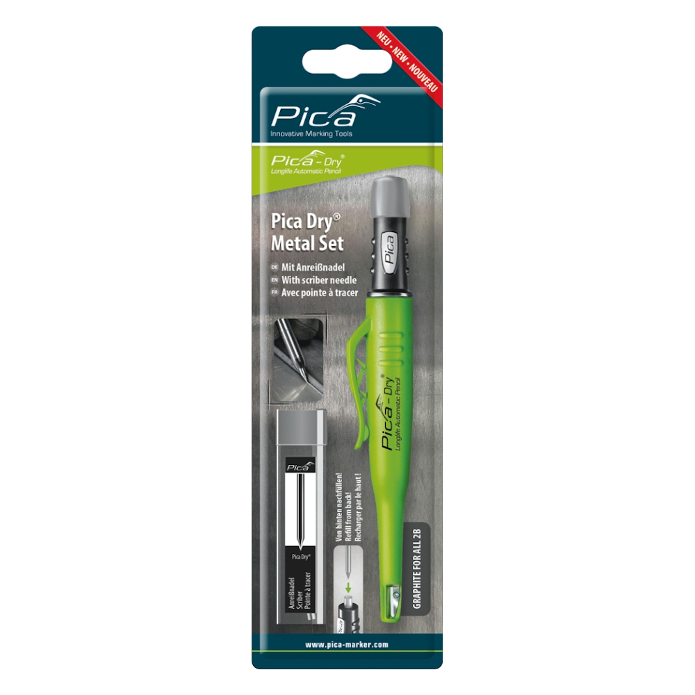 Pica-tusch med metalnål til markering på metaloverflader. Leveres med separat sikker opbevaring til metalnålen, hvis du har brug for at bruge almindelige nåle.