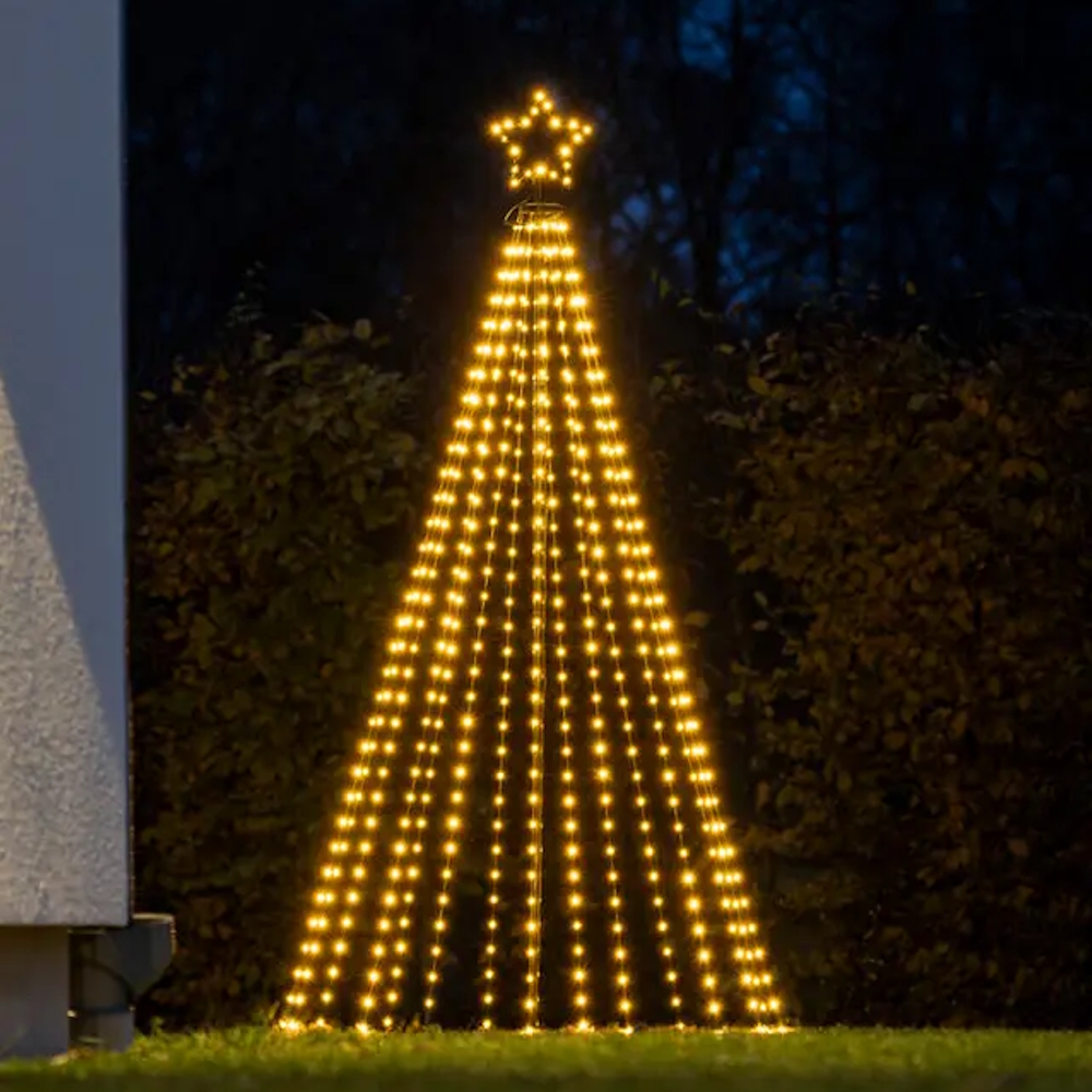 Et imponerende metaljuletræ med varmt hvidt LED-lys, perfekt til at skabe en magisk atmosfære i haven eller på terrassen. [Energiklass G]