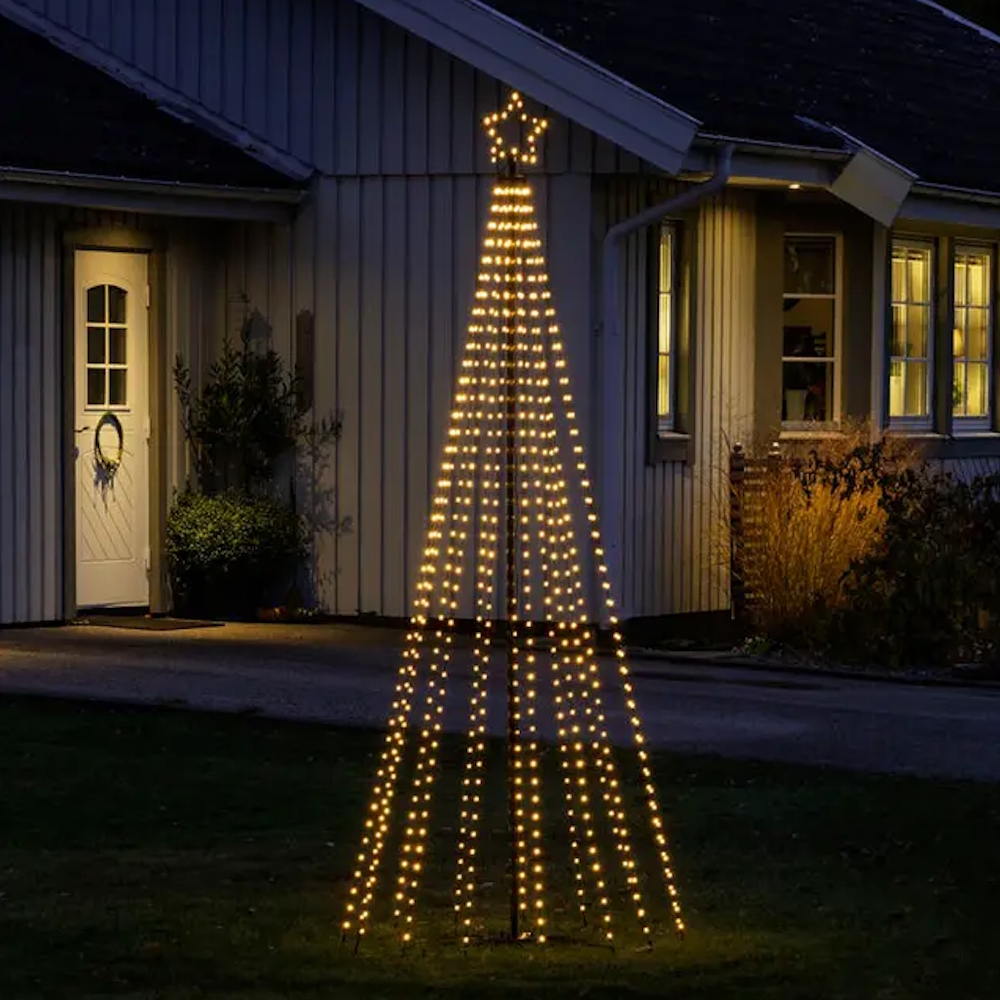 Et imponerende metaljuletræ med varmt hvidt LED-lys, perfekt til at skabe en magisk atmosfære i haven eller på terrassen. [Energiklass G]