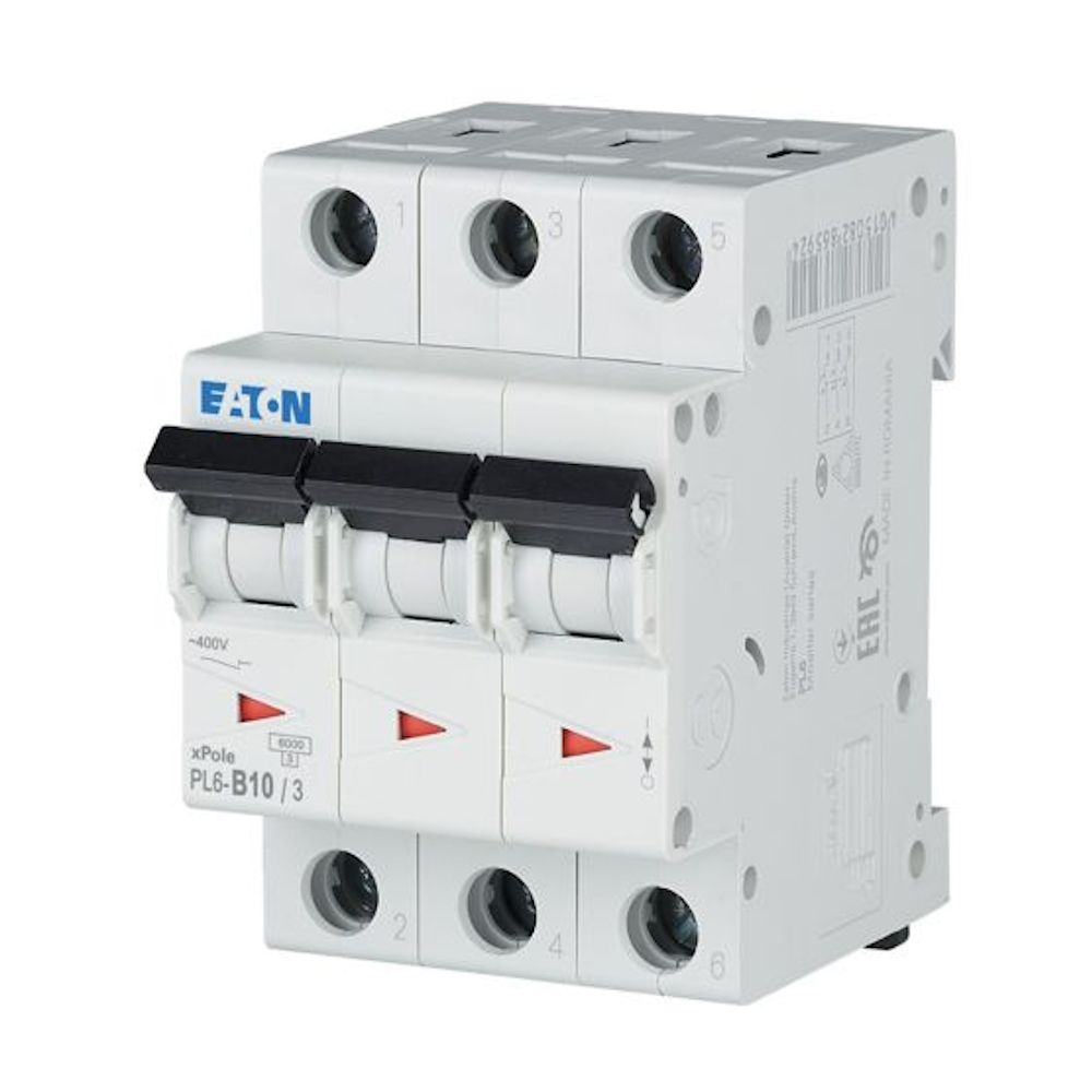 PL6 MCB er en 3-polet, 63A afbryder med en B udløsningskarakteristik og 6kA omskiftningskapacitet.
