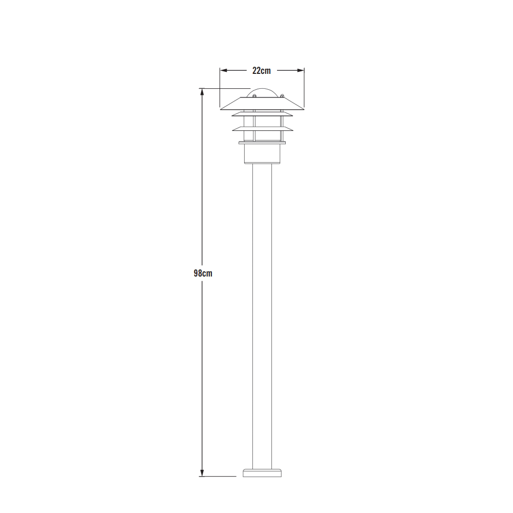 Modena pullert i galvaniseret stål med klart glas, en udendørslampe med karakter. Havelanterne Gnosjö Konstsmide Modena E27 med Stolpe er en moderne stolpelanterne. Lanternen har klart glas og er IP23-klassificeret. Denne stolpelanterne er tilpasset til udendørs brug og leveres uden lyskilde.