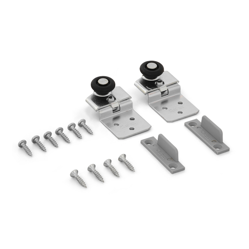 Komplet hjulsæt til garderobe- og indvendige døre med en vægt på op til 20 kg. Sættet indeholder 2 hjul med nylonlejer, 2 nederste styreøjer, træskruer og monteringsvejledning.