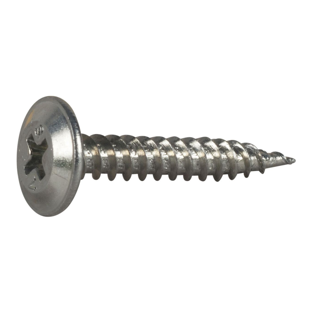 Skruen er lavet af hærdet stål med fosfateret eller blankforzinket overfladebehandling. Den er udstyret med en Philips-krydsindsats PH2.