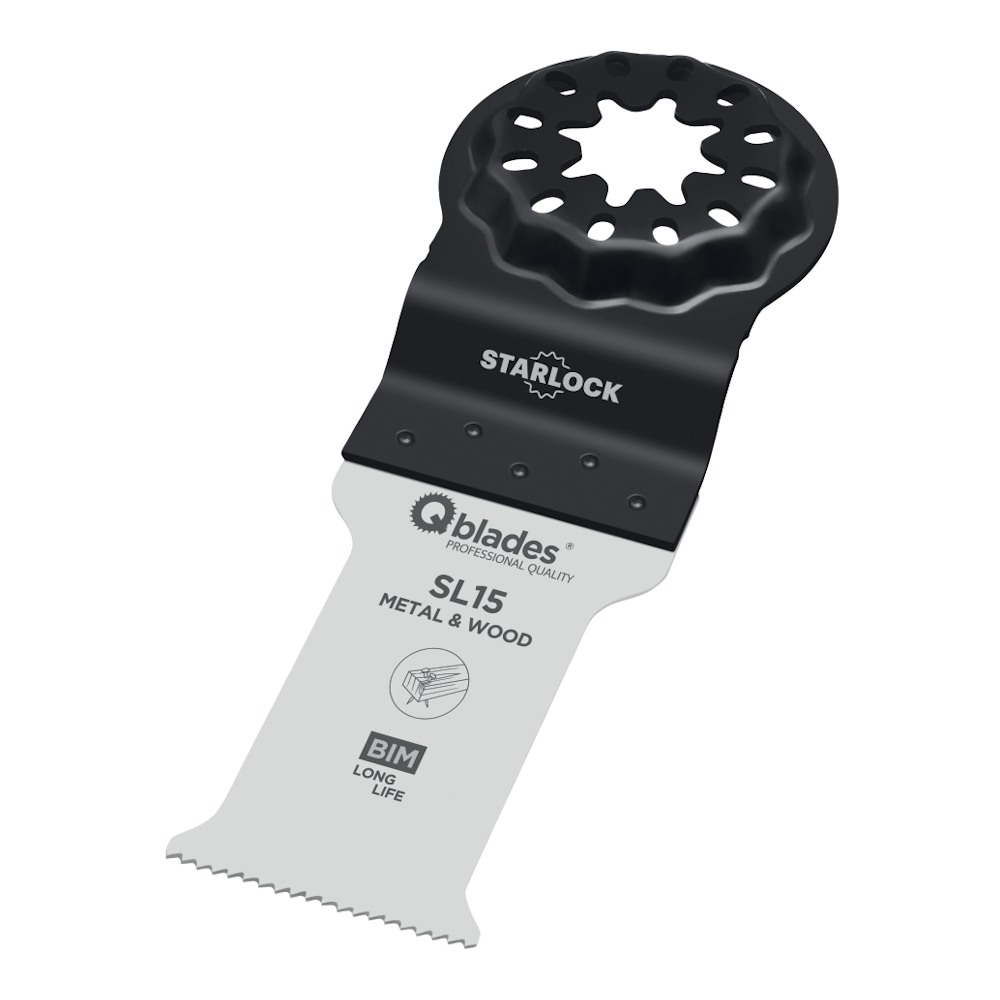 SL (Starlock)-koblingen er kompatibel med Starlock-systemet til tilbehør til multimaskiner, kompatibel med forskellige mærker, Bosch, Fein, Makita, Festool, Flex og Hikoki. Multisavklinge med bi-metal tænder, der giver en bred vifte af anvendelser. Saver nemt i træ, plast, søm, kobber- og aluminiumsrør og -profiler. Længde til holder 47 mm. Tykkelse 0,8 mm.