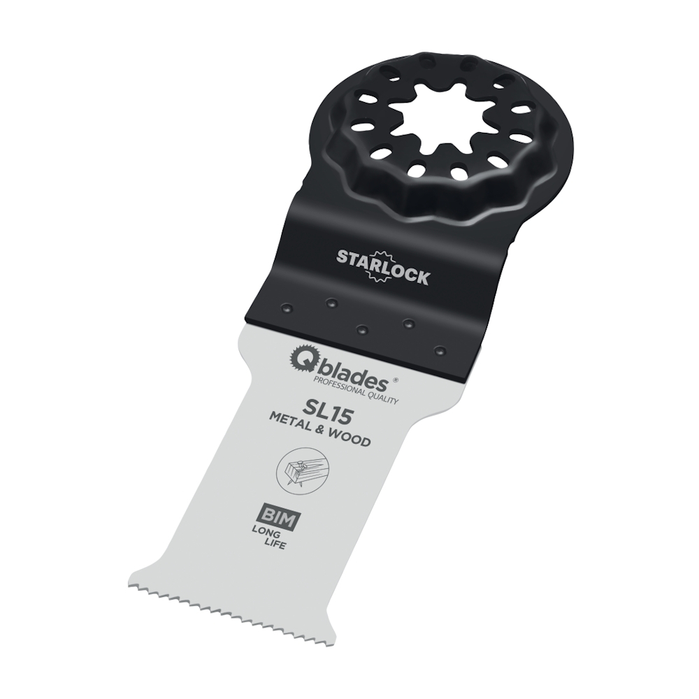 SL (Starlock)-koblingen er kompatibel med Starlock-systemet til tilbehør til multimaskiner, kompatibel med forskellige mærker, Bosch, Fein, Makita, Festool, Flex og Hikoki. Multisavklinge med bi-metal tænder, der giver en bred vifte af anvendelser. Saver nemt i træ, plast, søm, kobber- og aluminiumsrør og -profiler. Længde til holder 47 mm. Tykkelse 0,8 mm.