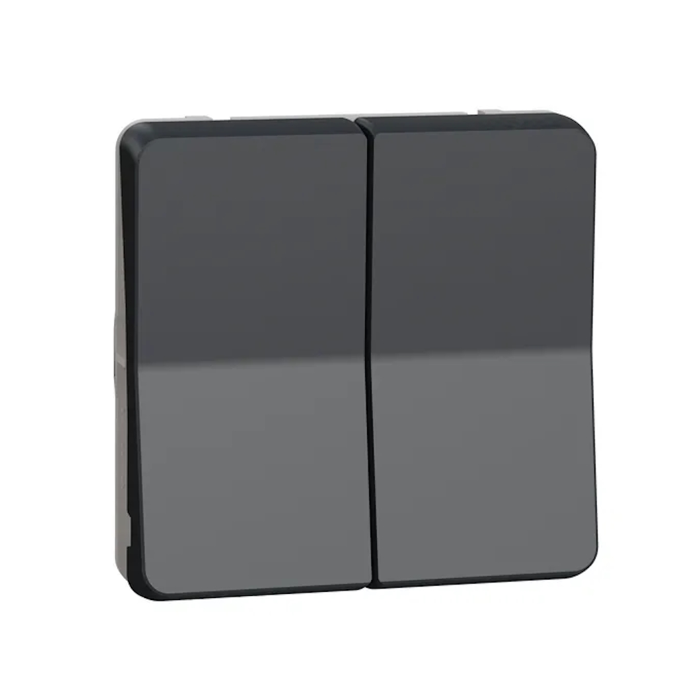 Mureva Styl dobbelt 2-vejs switch er en pålidelig vandtæt løsning til indendørs, udendørs brug takket være dens IP55 beskyttelsesgrad.