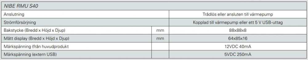 NIBE RMU S40 fungerar som extern display med inbyggd givare till NIBE S1155/1255 och NIBE VVM S320/325