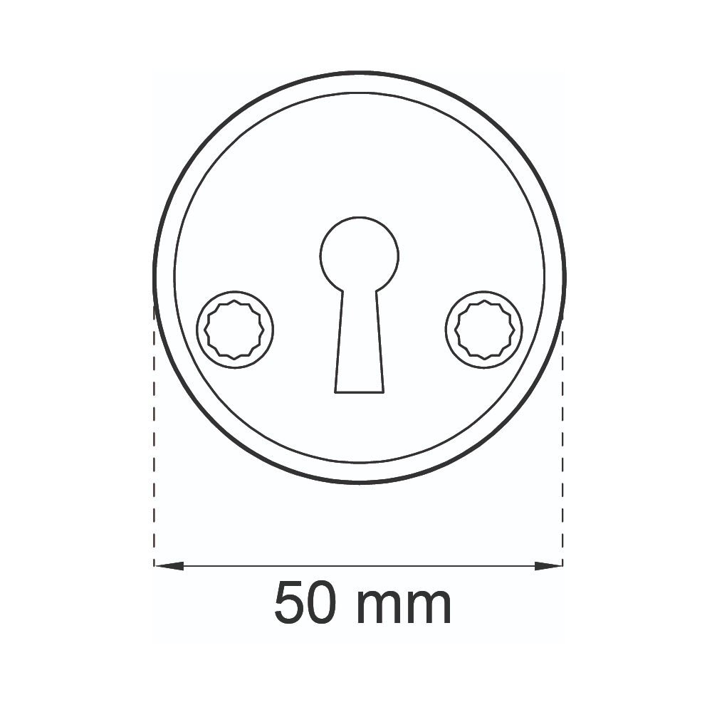 Nøgleplade af zink. Leveres med skruer til gennemgående hulmontering og træskruer. Velegnet til dørtykkelse 38-42 mm.