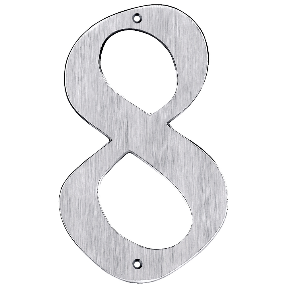 Husnummer i støbt messing, med en højde på ca. 205 mm og inklusive monteringsskruer, bruges som husnummer eller adressemarkering.