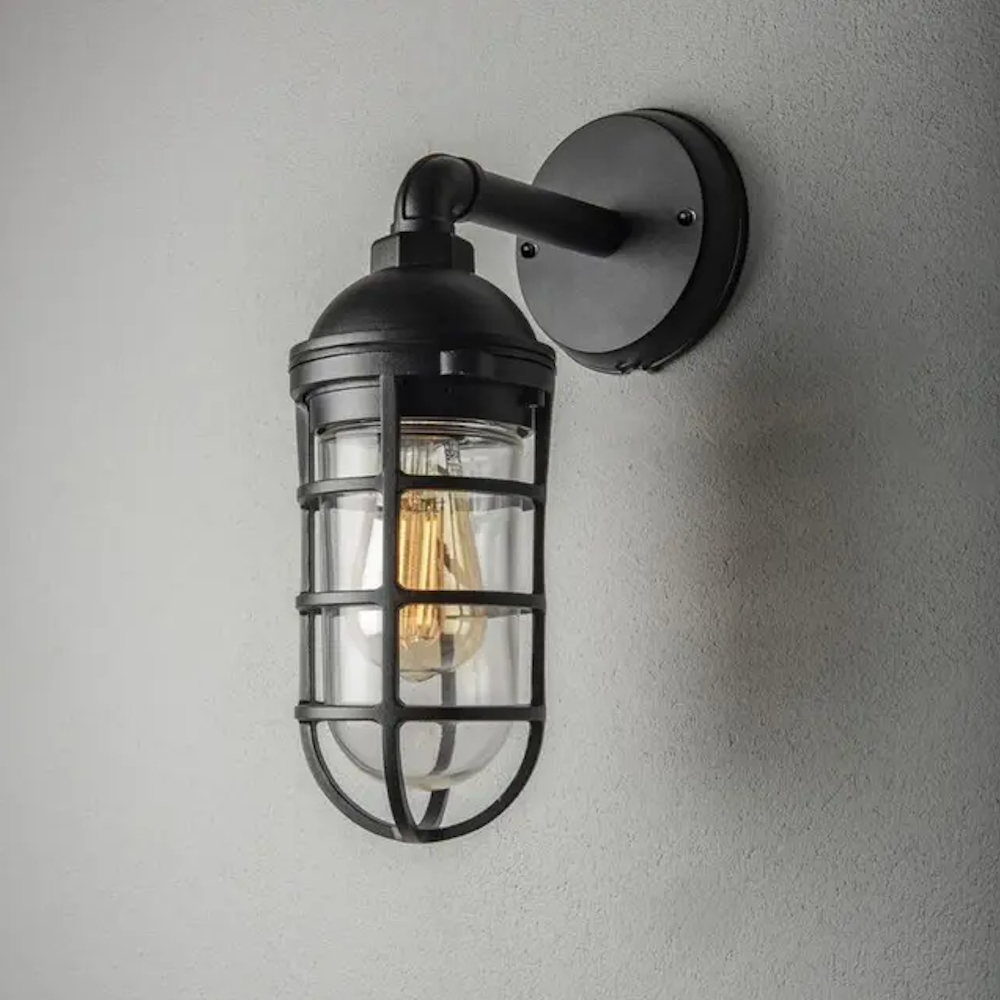 Olbia facadebelysning, i sortlakeret aluminium med klart glas, en elegant udendørsbelysning i industriel maritim stil. Lyskilde medfølger ikke.