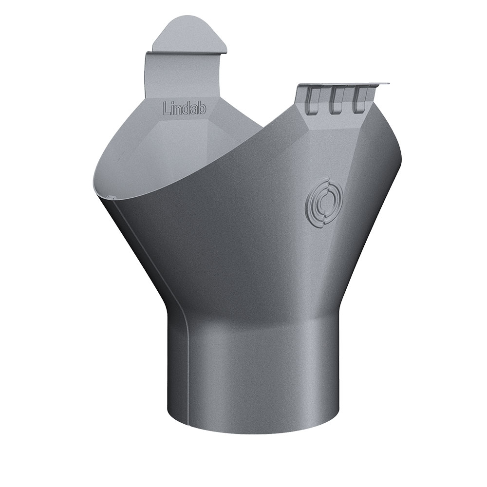 Omvikningskupan Lindab OMV är den mångsidiga kupan har ett enkelt vikmontage mot hängrännans halvcirkelform. Kan monteras när rännan sitter på plats.