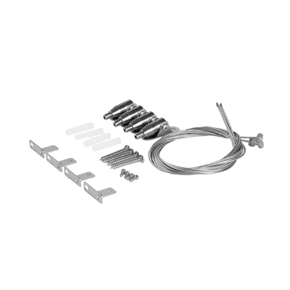 Ophængningssæt til panel Moln HE og Pop, ophængslængde min. 0,3m, maks. 1,5m, wire, loftbeslag og panelbeslag inkluderet i sæt.
