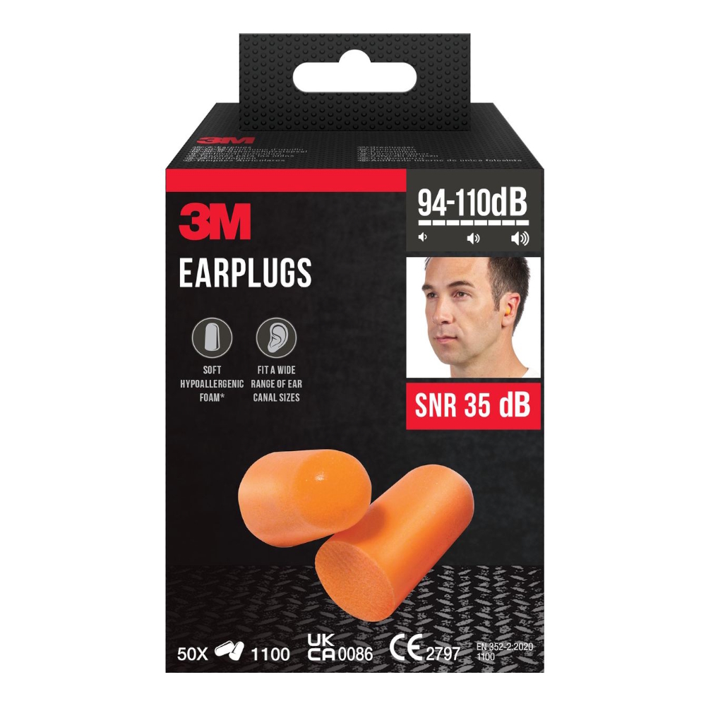 Brug 3M Ørepropper 1100 for komfortabel og effektiv hørebeskyttelse hele dagen lang. Vores bløde og meget behagelige ørepropper er lavet af allergivenligt PU memory foam. Det koniske design giver en god pasform til de fleste ører og gør propperne nemme at bruge. De er holdbare og behagelige, nemme at rulle sammen og bliver endnu blødere ved kropstemperatur. Engangspropperne reducerer støjniveauet med op til 37 dB og kan bruges i miljøer med et støjeksponeringsniveau på 94-105 dB. De leveres i en praktisk pakke med individuelt indpakkede par.