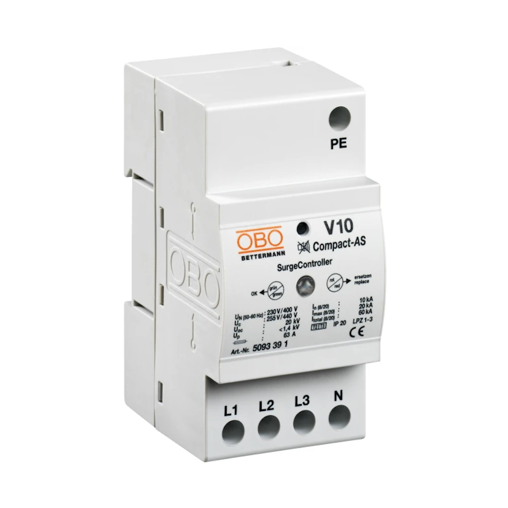 Overspændingsbeskytter V10 Compact-AS 3P+N/Beskyttelsesjord 10kA 230V IP20 OBO Bettermann