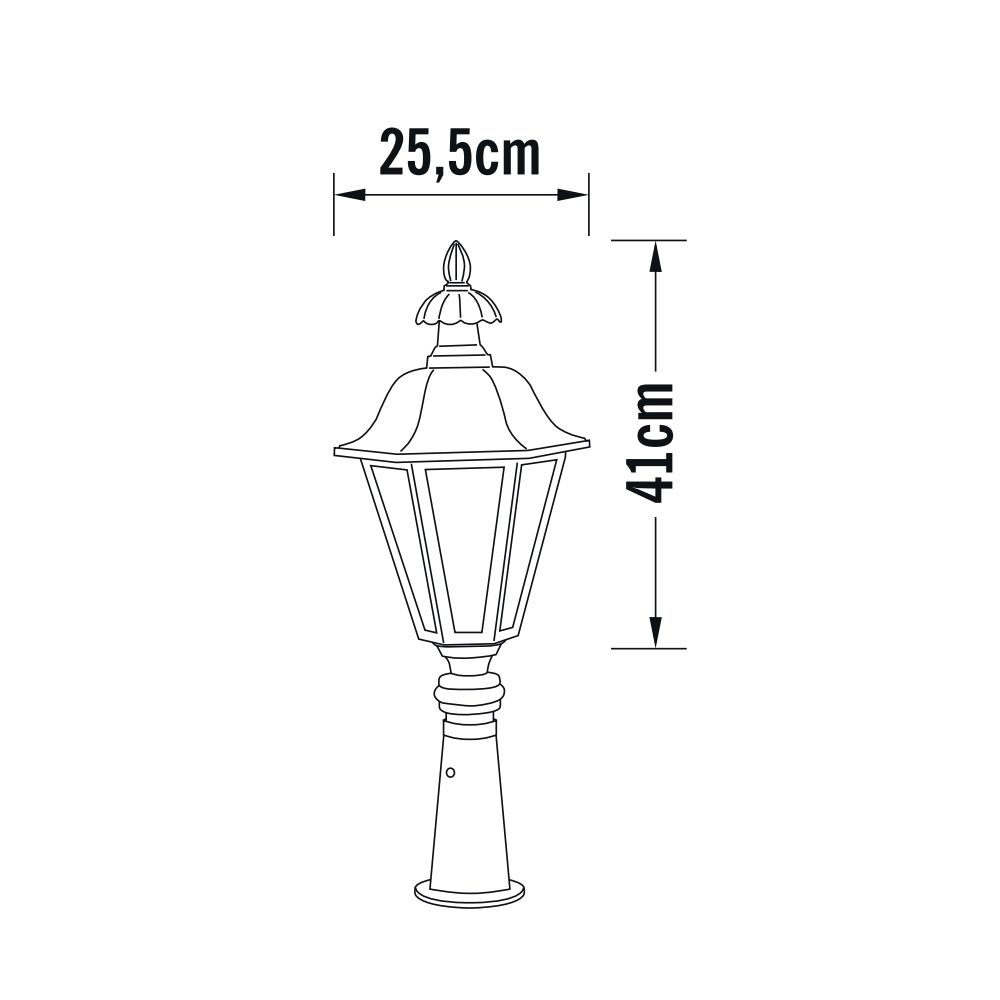 Pallas havelampe uden stolpe er en klassisk udendørslampe i hvidlakeret aluminium, designet til stilfuld have- eller entrébelysning. Den er egnet til 230-240V elnettet og har en E27-fatning med maksimalt 60W, hvilket betyder, at du nemt kan vælge din ønskede lyskilde. Med beskyttelsesklasse IP23 er lampen egnet til brug i beskyttede udendørsmiljøer. Lampen er dæmpbar afhængigt af den valgte lyskilde, men leveres uden indbygget lysdæmper. Den er godkendt til udendørs brug og fremstillet i Ungarn. Dens dimensioner er cirka 41 cm i højden, 25,5 cm i bredden og 22 cm i dybden.