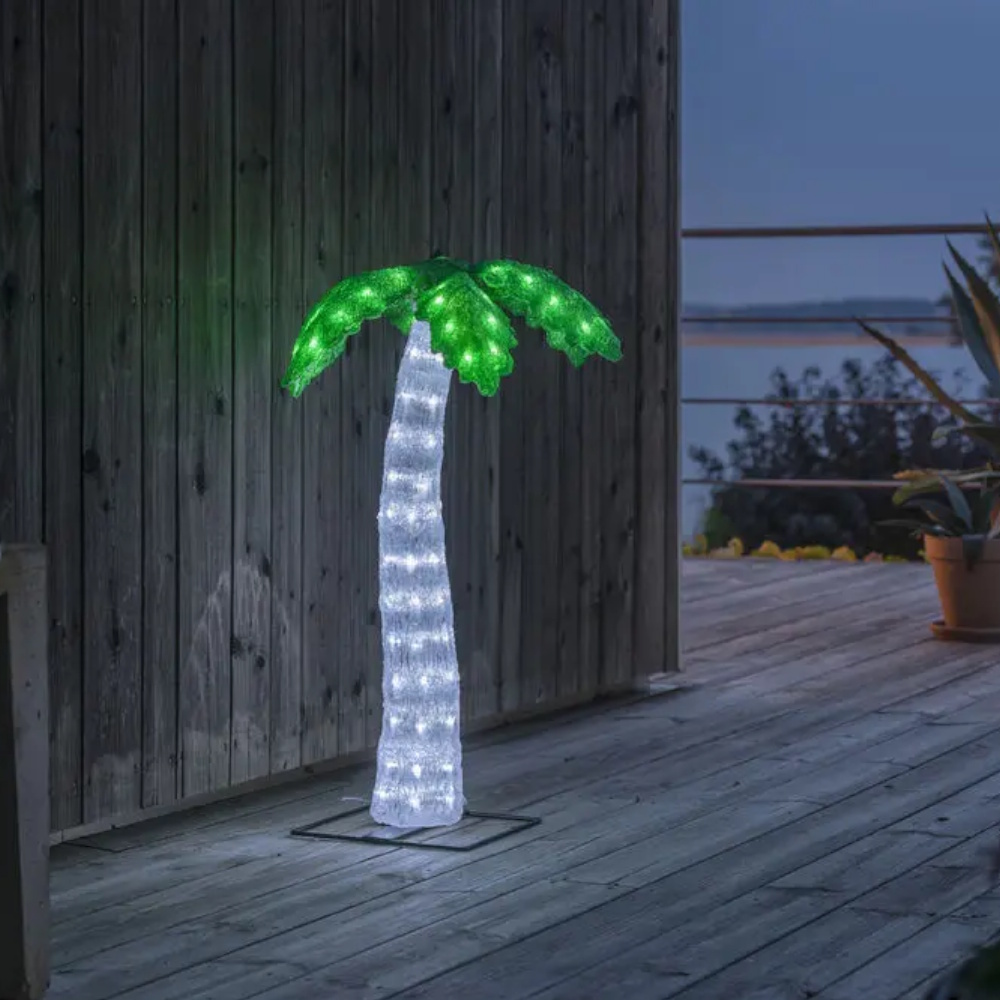 Akrylpalme med 112 holdbare og højkvalitets LED-lys, der er egnet til både indendørs og udendørs brug. [Energiklass F]